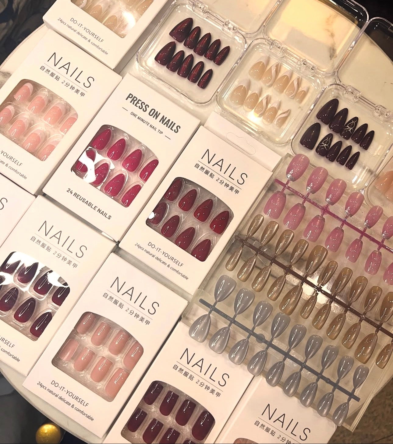Nails 02- Realistic Almond Glow French Nails - Pack of 24 with free stickers