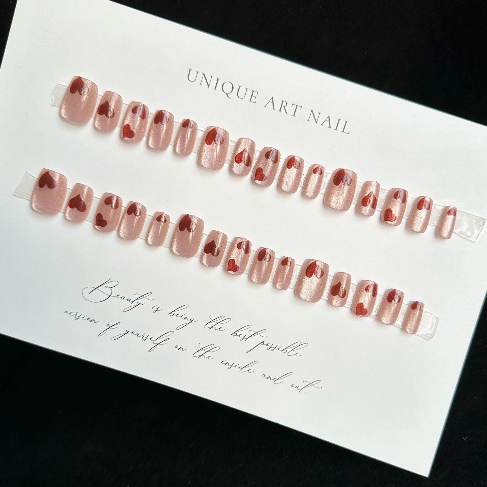Cat-eye beige heart Nails-Pack of 24 with free stickers BB-118
